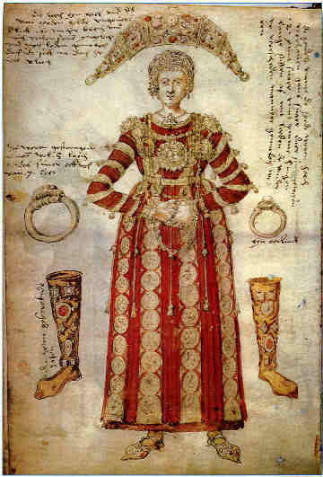 nobleman, described the armour-like garments which were covered entirely in gold and even included colour plates in his work. According to him, there were about thirty families in East Friesland who owned these types of costumes. Even women from the middle classes are said to have adorned themselves with gold plates, decorated with gems and fine filigree. Gold was regarded in general as a stable capital investment, even for farmers, traders and craftsmen.