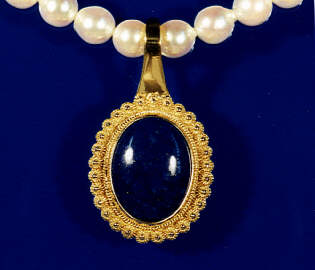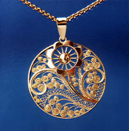 Model: Filigree pendant with Lapis Lazuli stone, worked in 18 carat yellow gold |