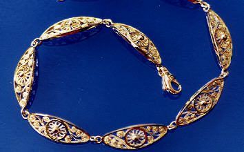 All the pieces of jewellery shown are hand-crafted in our workshop. No cast filigree pieces are used. |