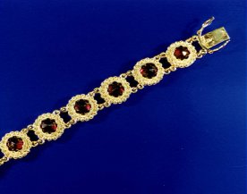 AB 6 with 14 garnet roses worked in 18 carat yellow gold |