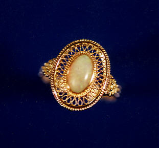 R 15 with opal, oval-shaped ring, worked in 18 carat yellow gold |