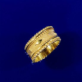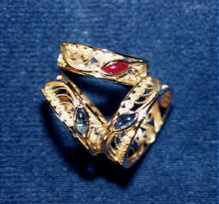 Model: R 7 with saphire and ruby worked in 18 carat yellow gold